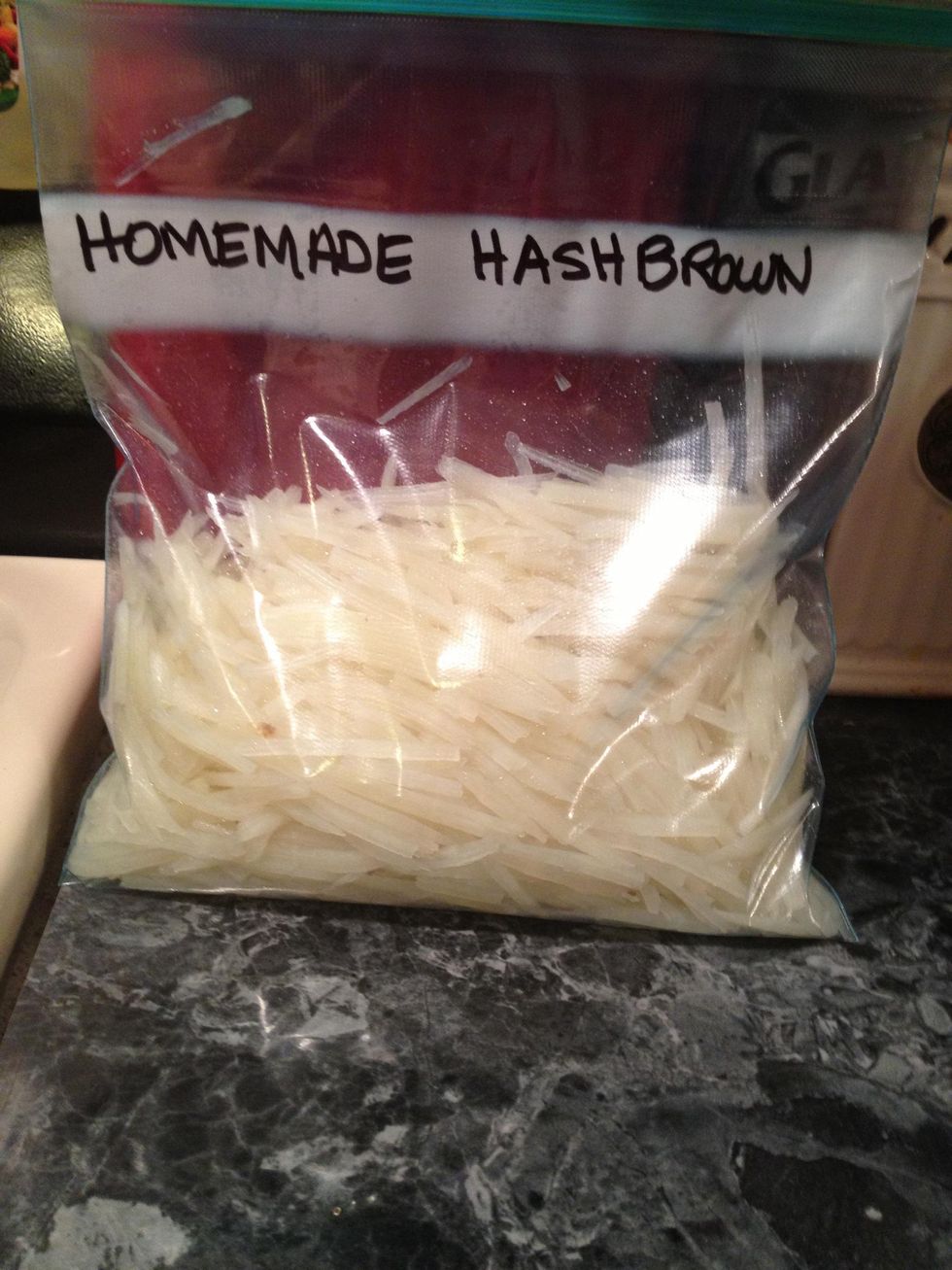 Shred as many potatoes as you want. Keep all the shredded potatoes in cold water until you are ready for next step.