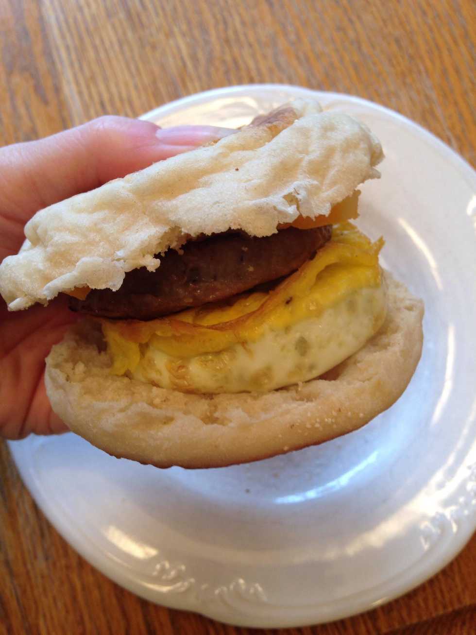 Add the top English muffin. You can spread mayo on inside of muffin if you like.