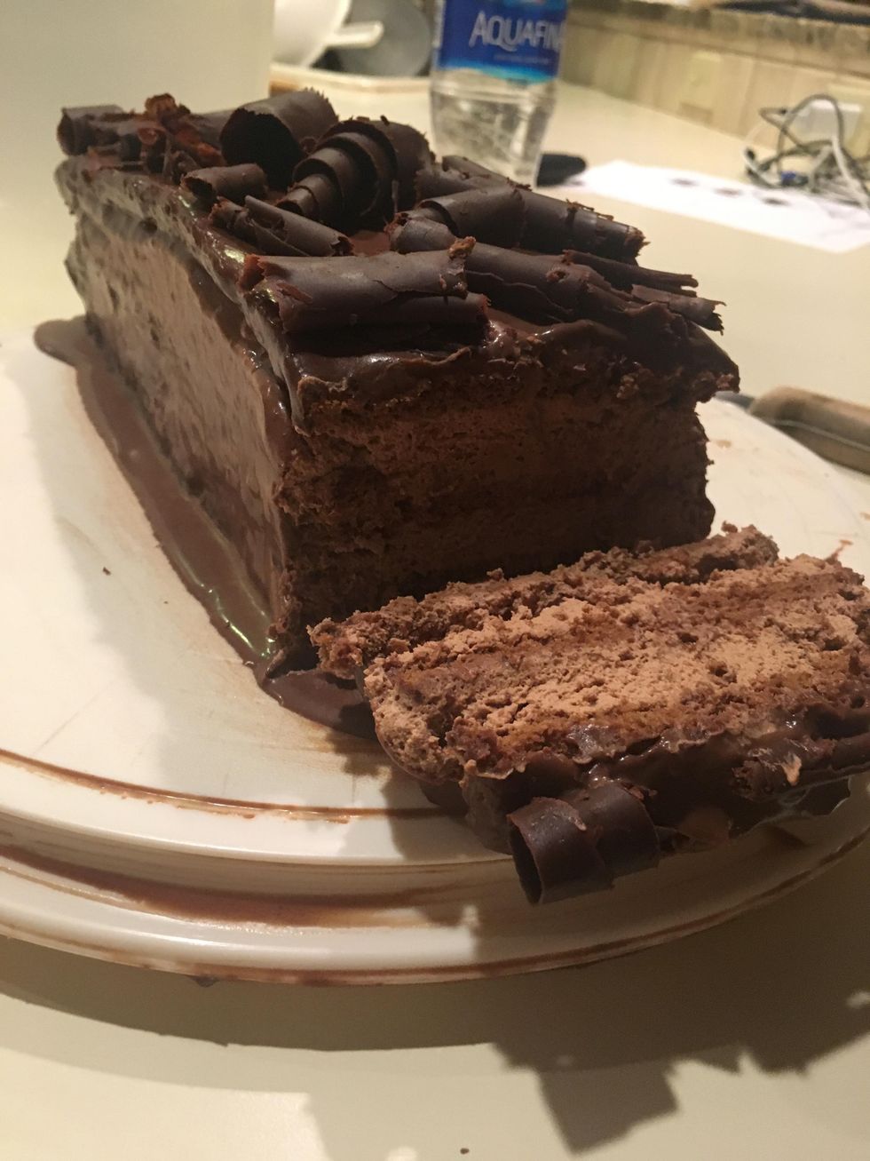 When ready to ice the cake, melt 9 ounces bittersweet chocolate, chopped, in a double boiler. I used dark chocolate chips instead.