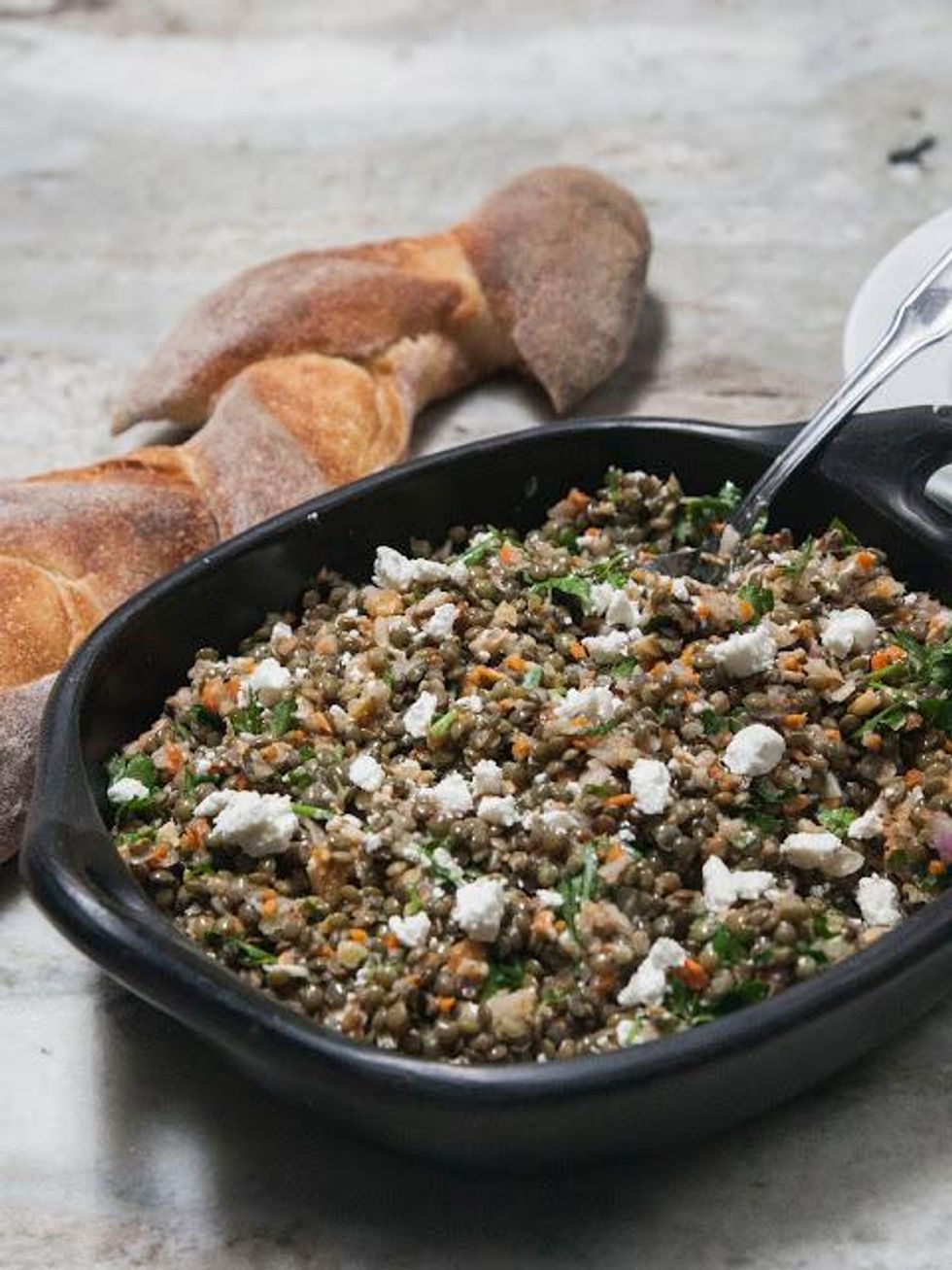Meanwhile, toast and chop the walnuts. When the lentils are cooled, mix in the chopped parsley and walnuts.