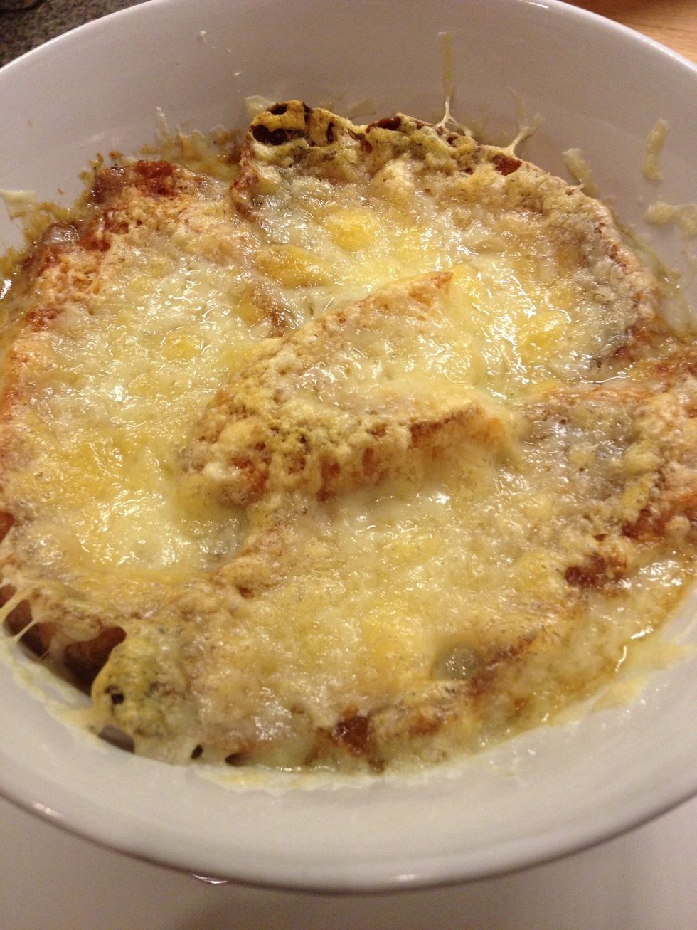 And cover with grated gruyere cheese, then grill/broil until gratinated