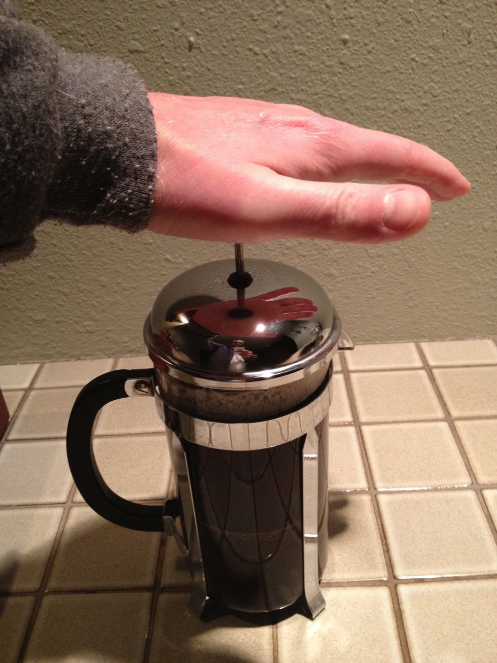 when time is up, push down slowly but firmly. You should use 2 hands, but I needed 1 to take the photo!