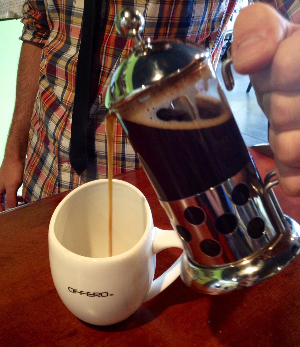 Slowly pour into your favorite Offero cup, withholding the last half ounce or so.