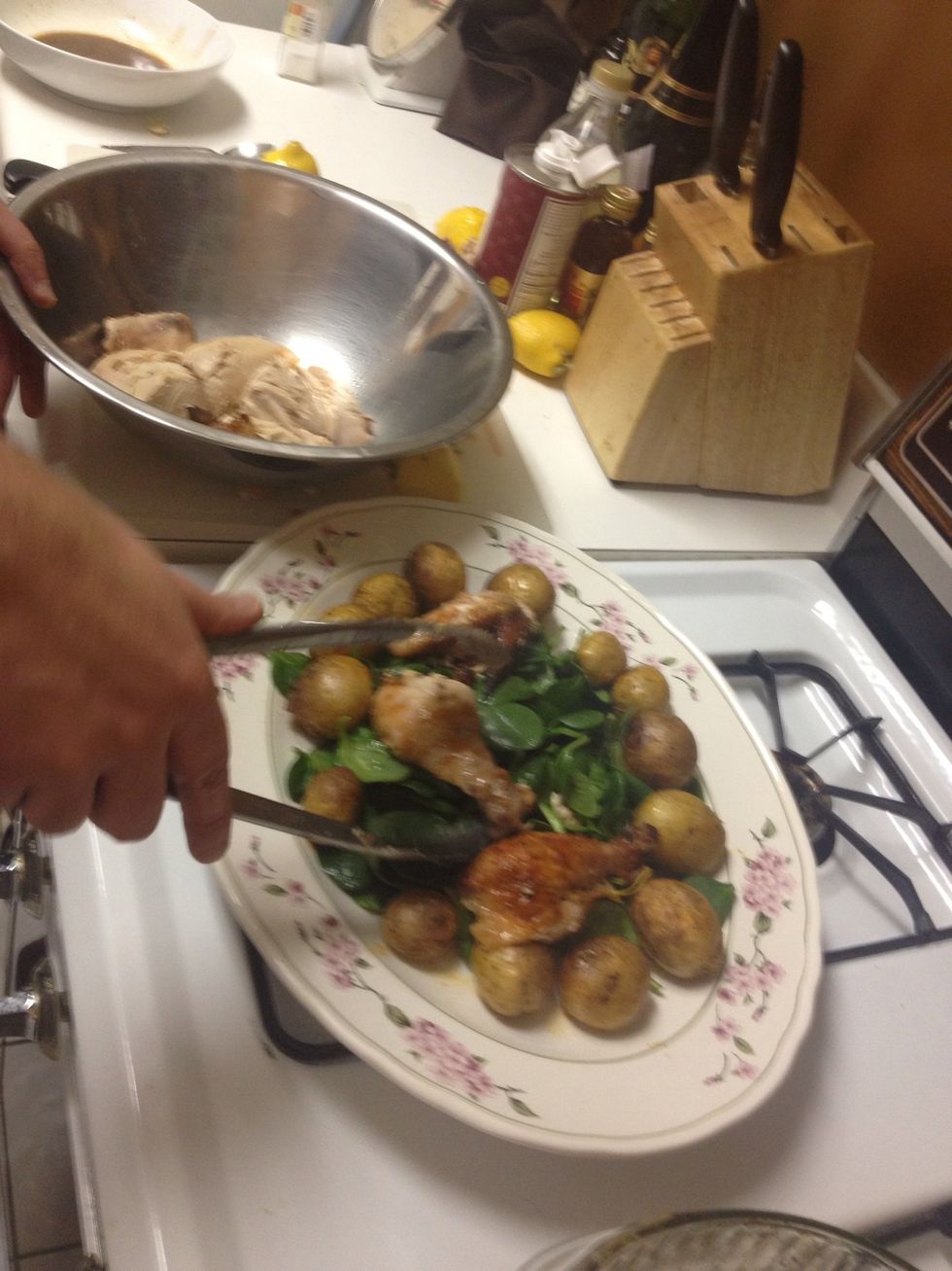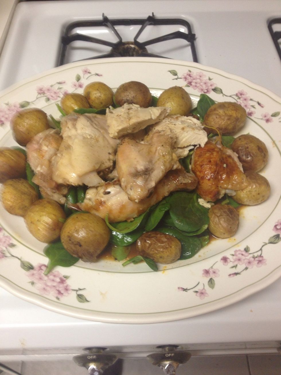Put some spinach & the shredded meat in a serving plate and pour some of the sauce on top