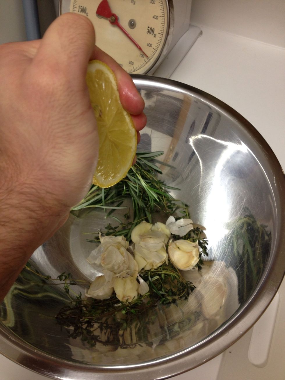 Squeeze 3 lemons to bowll (throw them inside bowl)