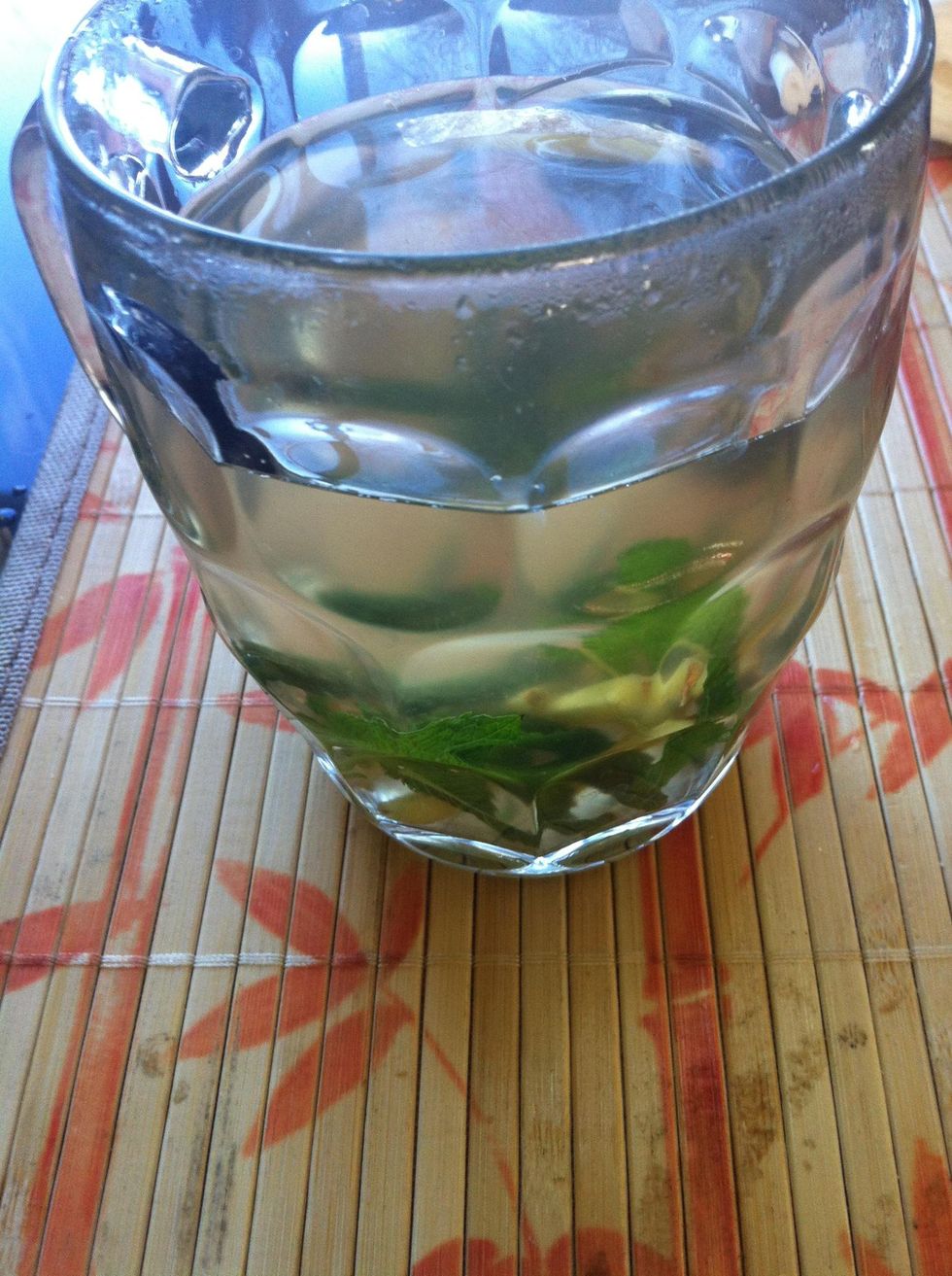 throw the remaining ginger & mint in the boiling water. let simmer and then go ahead and pour your water into your cup. let it steep until its not too hot to drink! sweeten with honey if you like. 😃