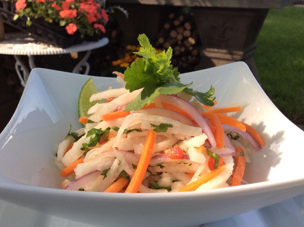 - 3.0 Fresh jicama, peeled, halved and julienned