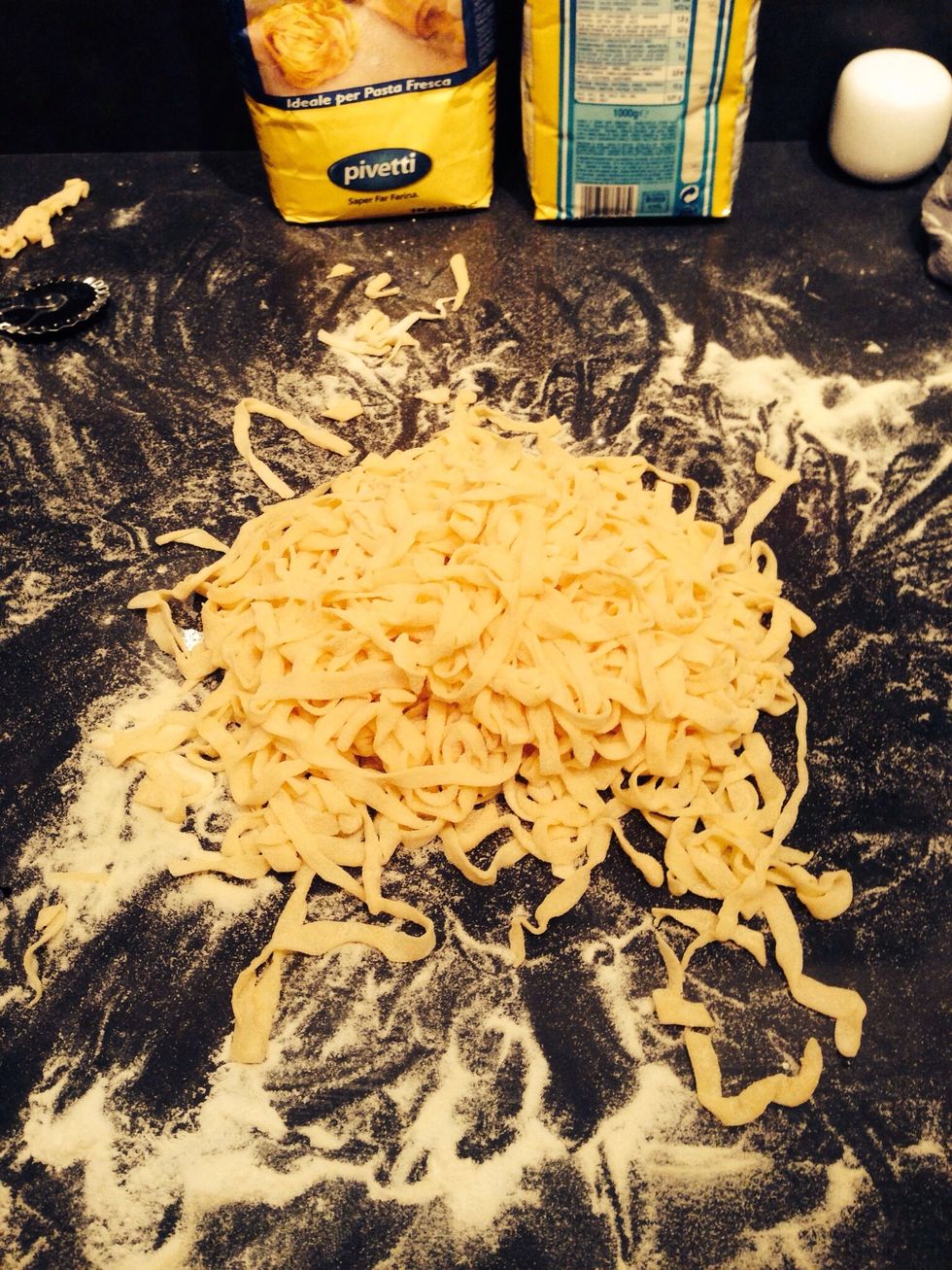 At this point you can make any pasta you like - ravioli, pappardelle, spaghetti or the one I chose is fettuccini
