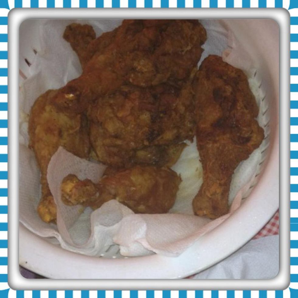 *start frying chicken but don't over crowd at least 15 to 20 mins till golden brown.. Poke with folk to make sure it's not red inside..