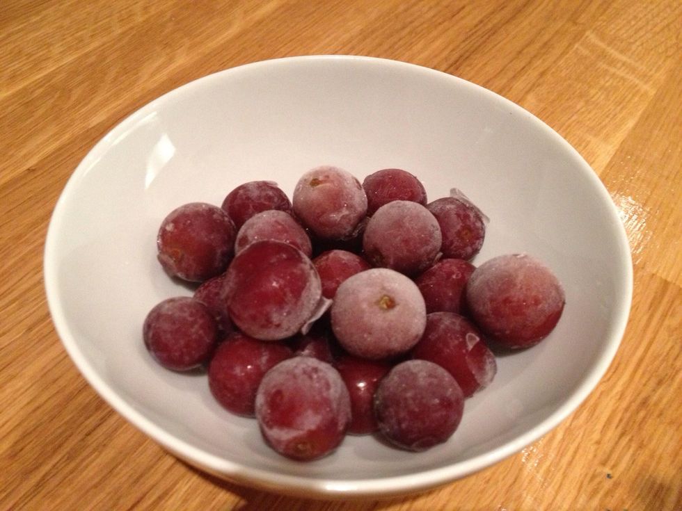 Wash some grapes and take them all off the stalks. Place them in the freezer for at least a few hours. I just leave some in there to have a few when I want them