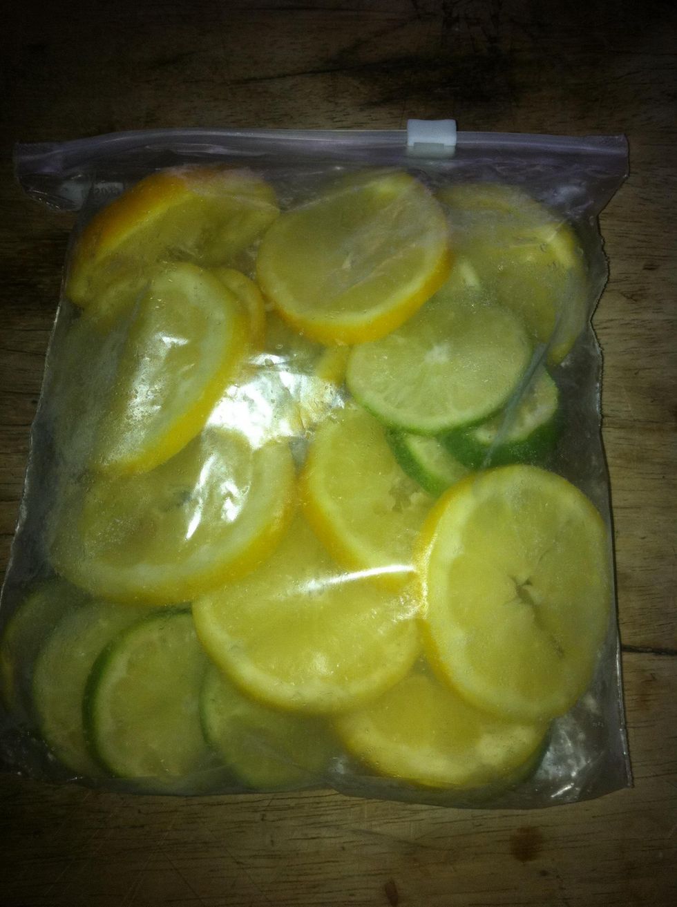 How to make frozen lemons for g&t Slice fresh lemon and limes and freeze them on a tray. After half and hour pop them all in a bag and use for the perfect gin and tonic accompaniment.Deborah Gardner 112