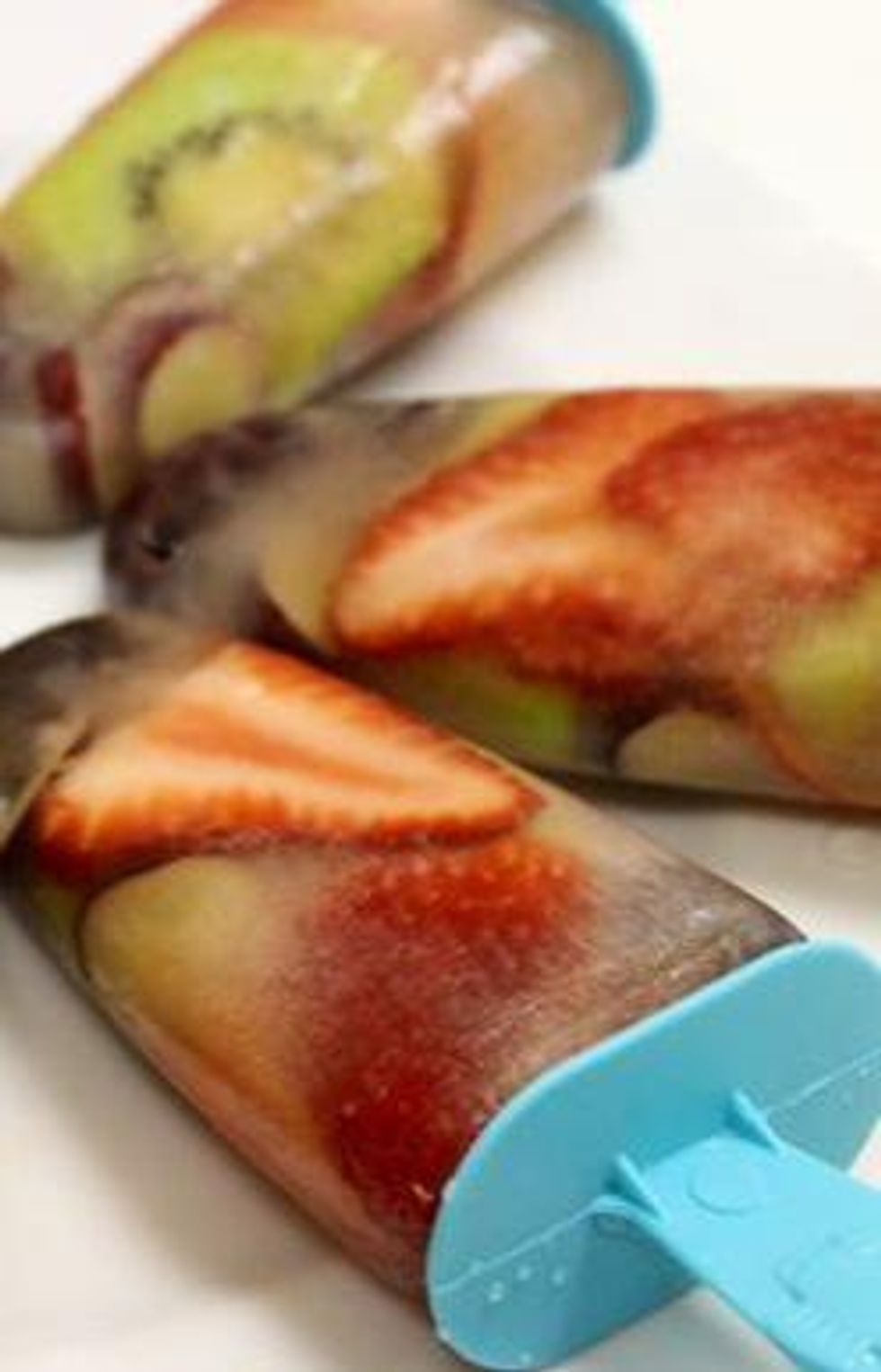 Add 2cups of boiling water to your favorite green tea. Let it steep then cool it in the fridge for 1hr. You can chose not to cool the tea to save time--popcycles will take on the fruits' color.