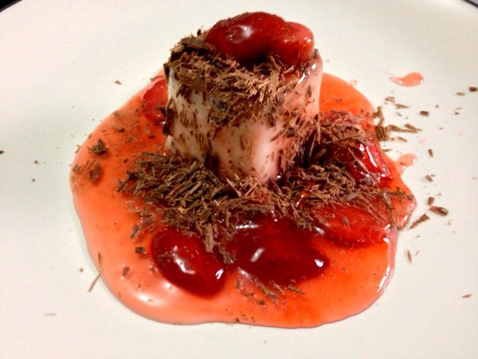 Drizzled the strawberry compote all over the panna cotta and add some grated choco :) hope you like it. Enjoy