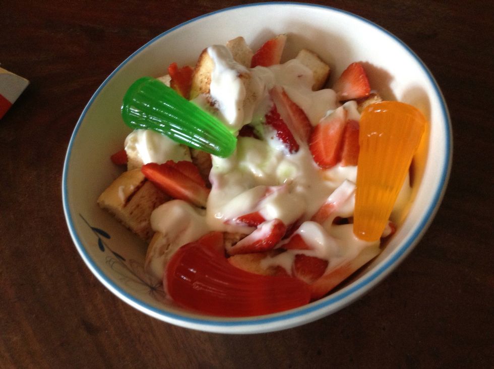 Spread the strawberries onto diced toast thoroughly