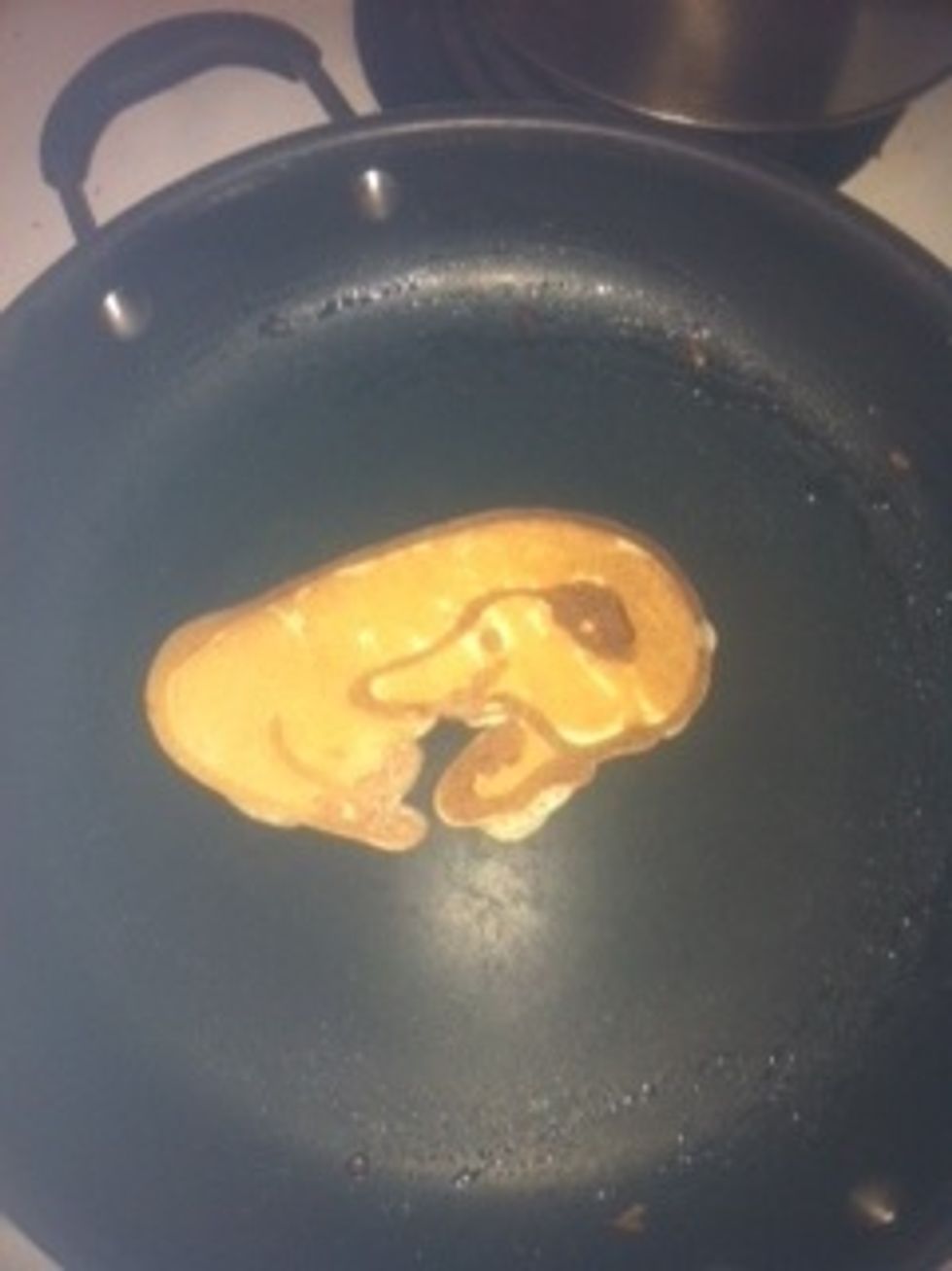 Heat a nonstick pan on med and add butter. While the pan is heating up add the batter to the bottle.