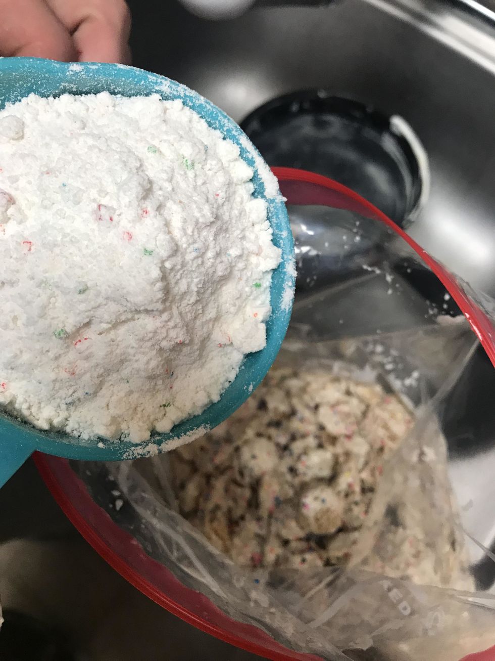 Transfer Mixture to Ziploc and Add Cake Mix and Spread