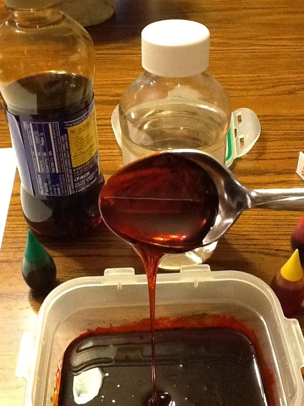 Peanut butter for coagulating. Flour for thickening. Cocoa powder for aging. Dish soap for thinning.