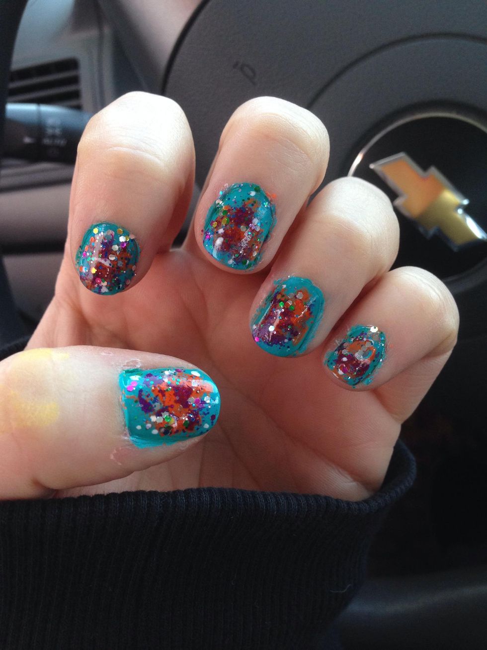Lastly, put the glitter polish on. Voila! Cosmic nails!