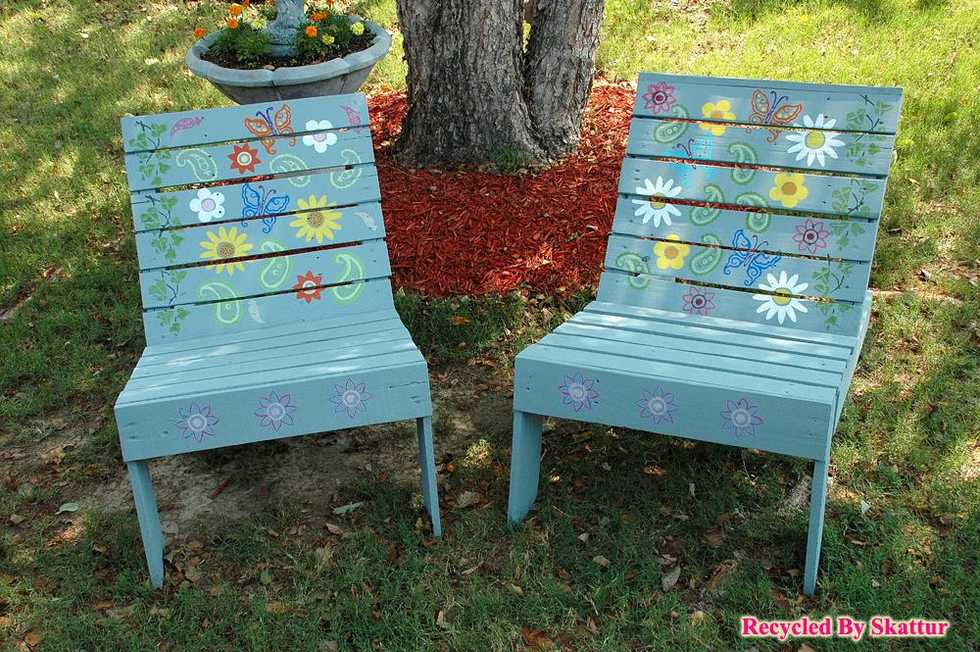 For added fun, I stamped the chairs using assorted foam stamps and patio paints. Once all the paint is dry, your chairs are ready for the garden! :)
