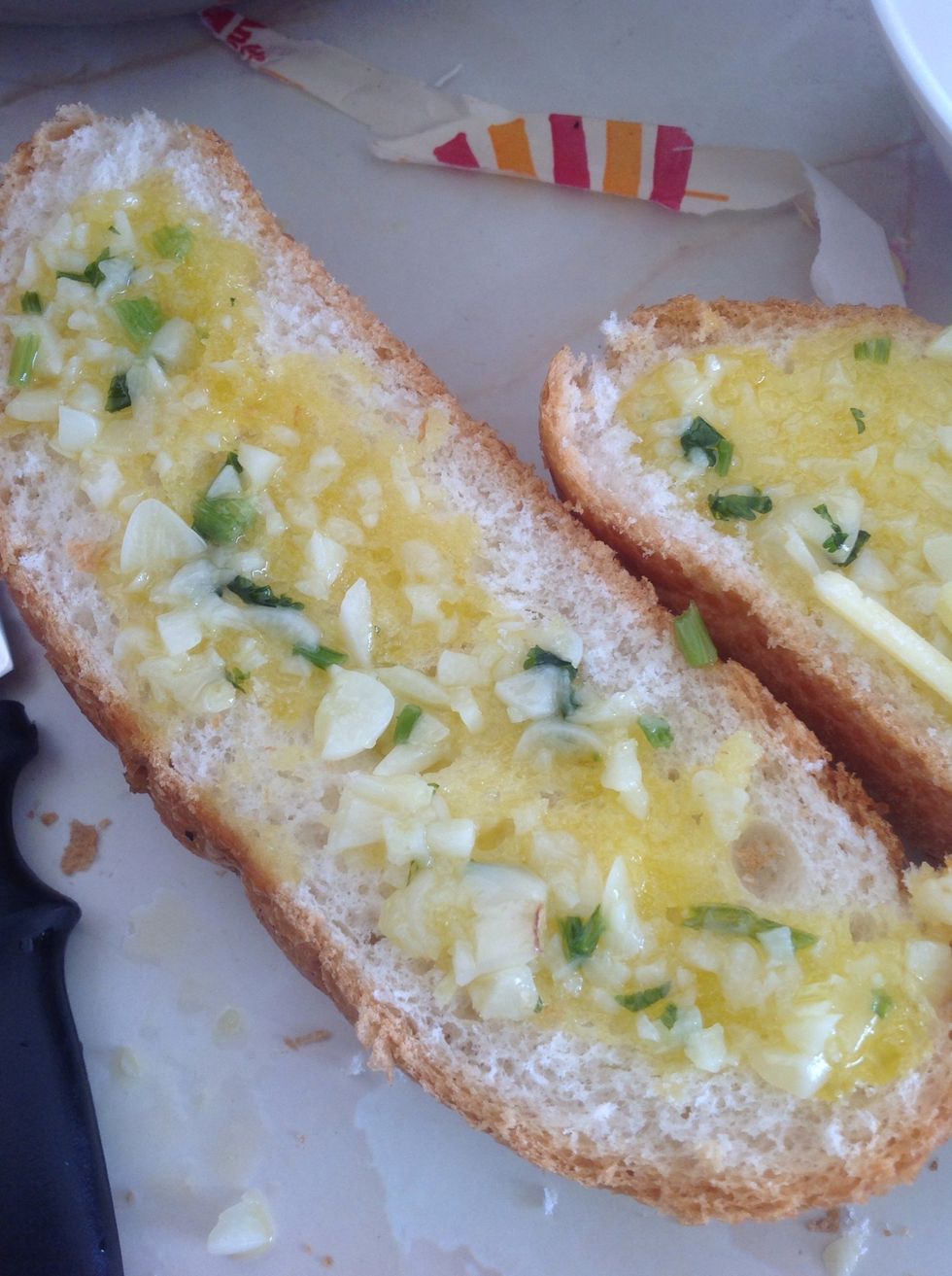 Mix coriander, garlic and 50 gram of butter, put in the microwave for about 1 mins until it melts down