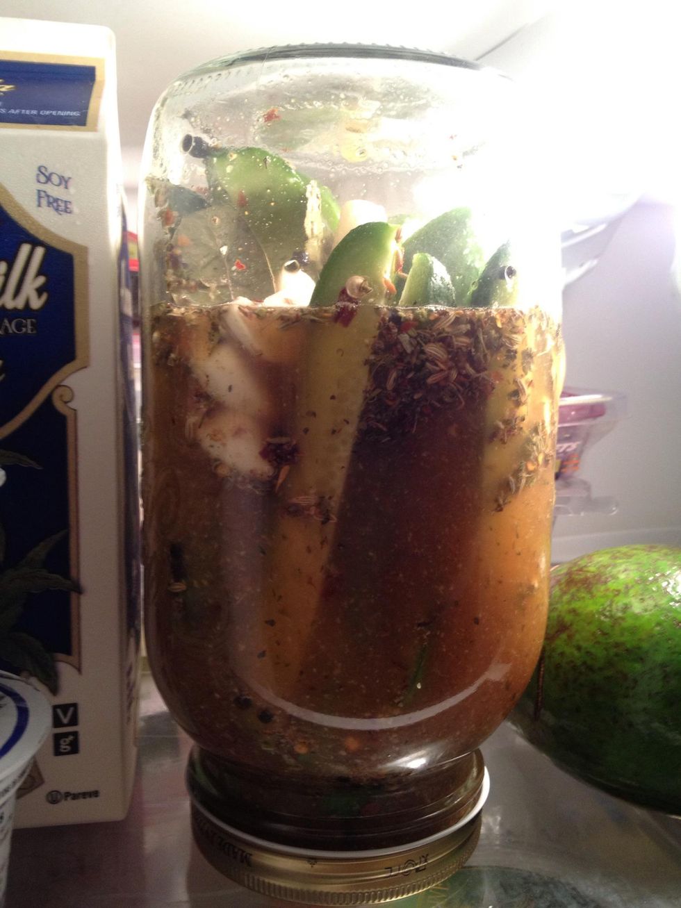 I've seen some great recipes for pickles, but I decided to add more garlic with mine and wanted to share the recipe!