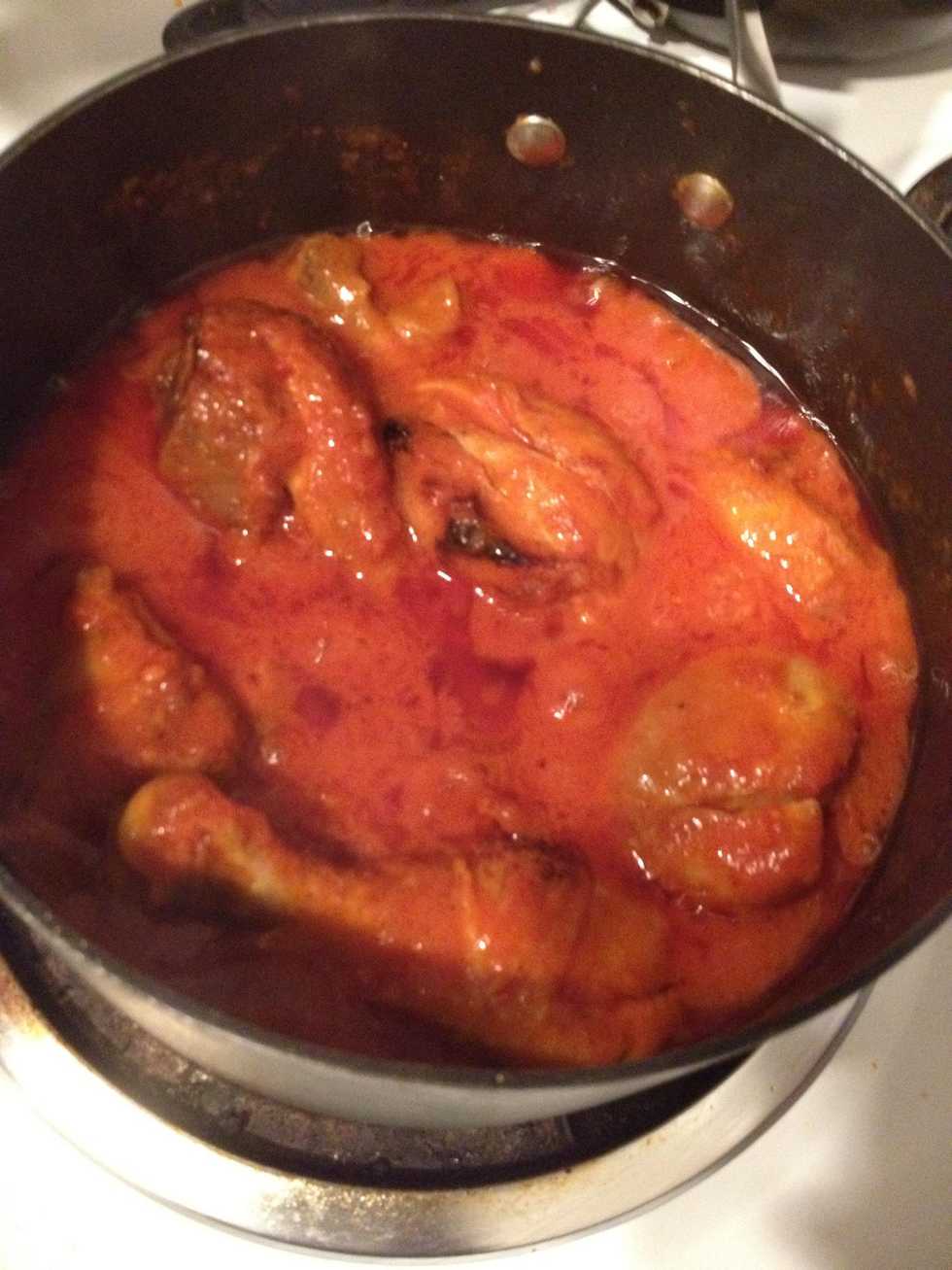 1.0 Onion Habeniero Pepper Chunk of Ginger10.0 Chicken Drumsticks Canola or Olive Oil1.0 Medium Size Tomato1.0 Tomato Sauce Curry Powder Nutmeg