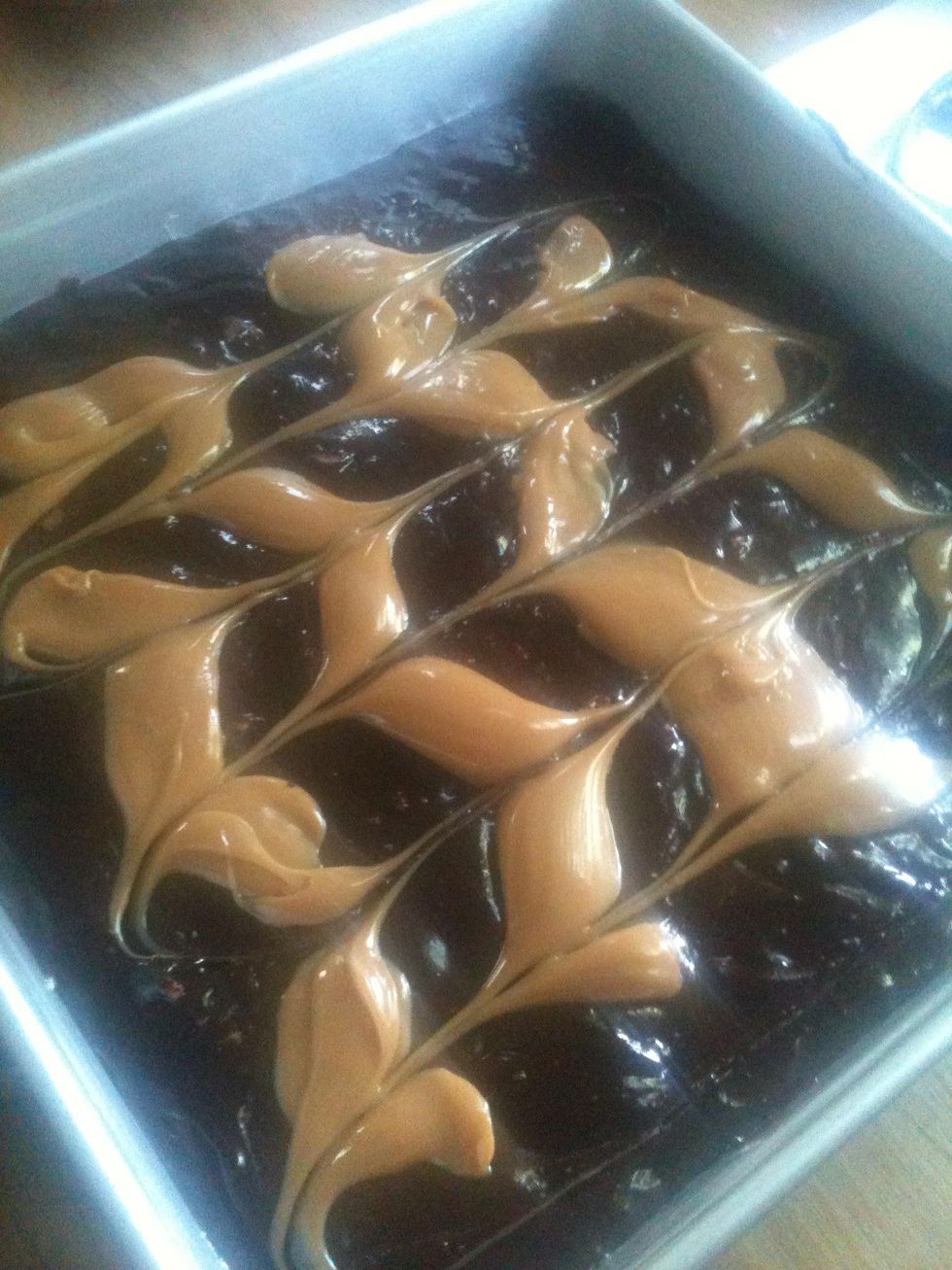 Take the remainder of the batter you had set aside and spread over the chocolates, sealing them into the batter.