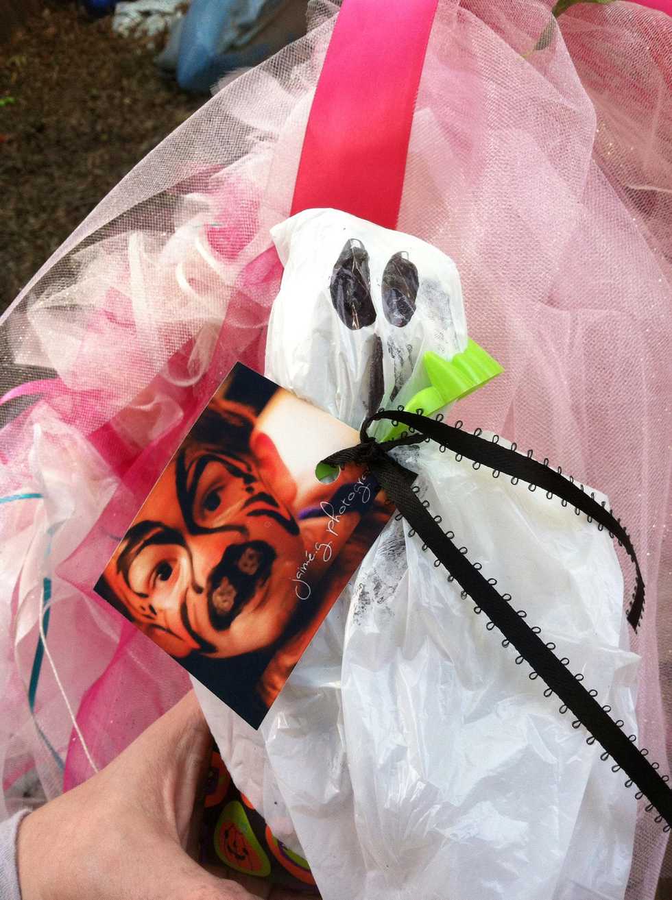 Hold the "neck" of the ghost securely ensuring that the treat bag doesn't fall out.