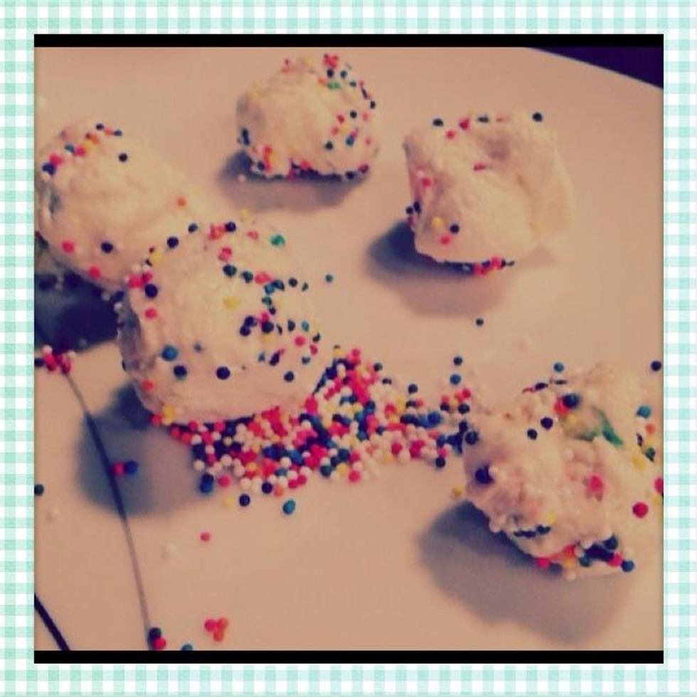 Add anything you want on top for decoration (like food coloring). I don't have any food coloring so I used sprinkles instead