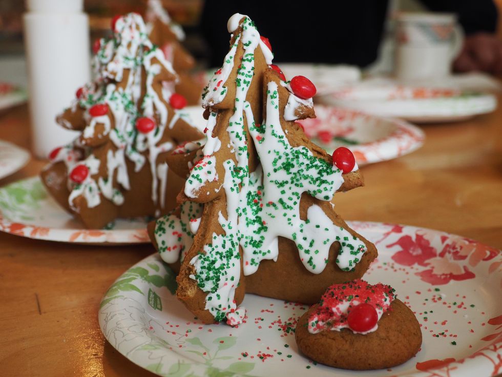 Add your favorite things for decorating . We use red and green decorating sugar, red hots, raisons and cranberries. To save time you can use refrigerator gingerbread dough and store bought icing.