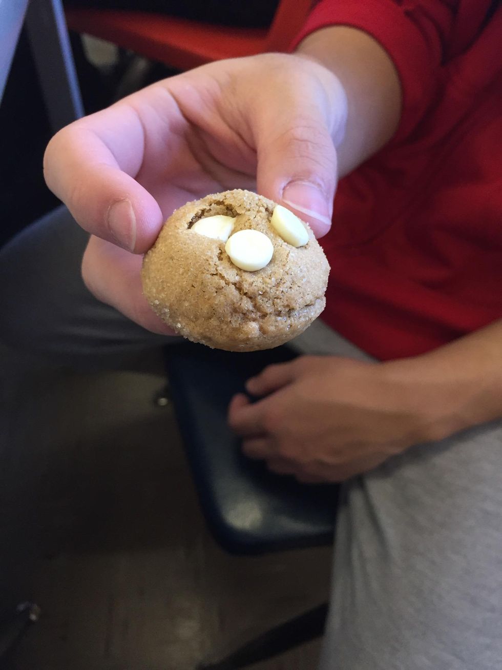 Bake 8 to 10 minutes or until the edges of the cookies just begin to brown. IMMEDIATELY press a couple of white chocolate chips into the centre of the cookies.