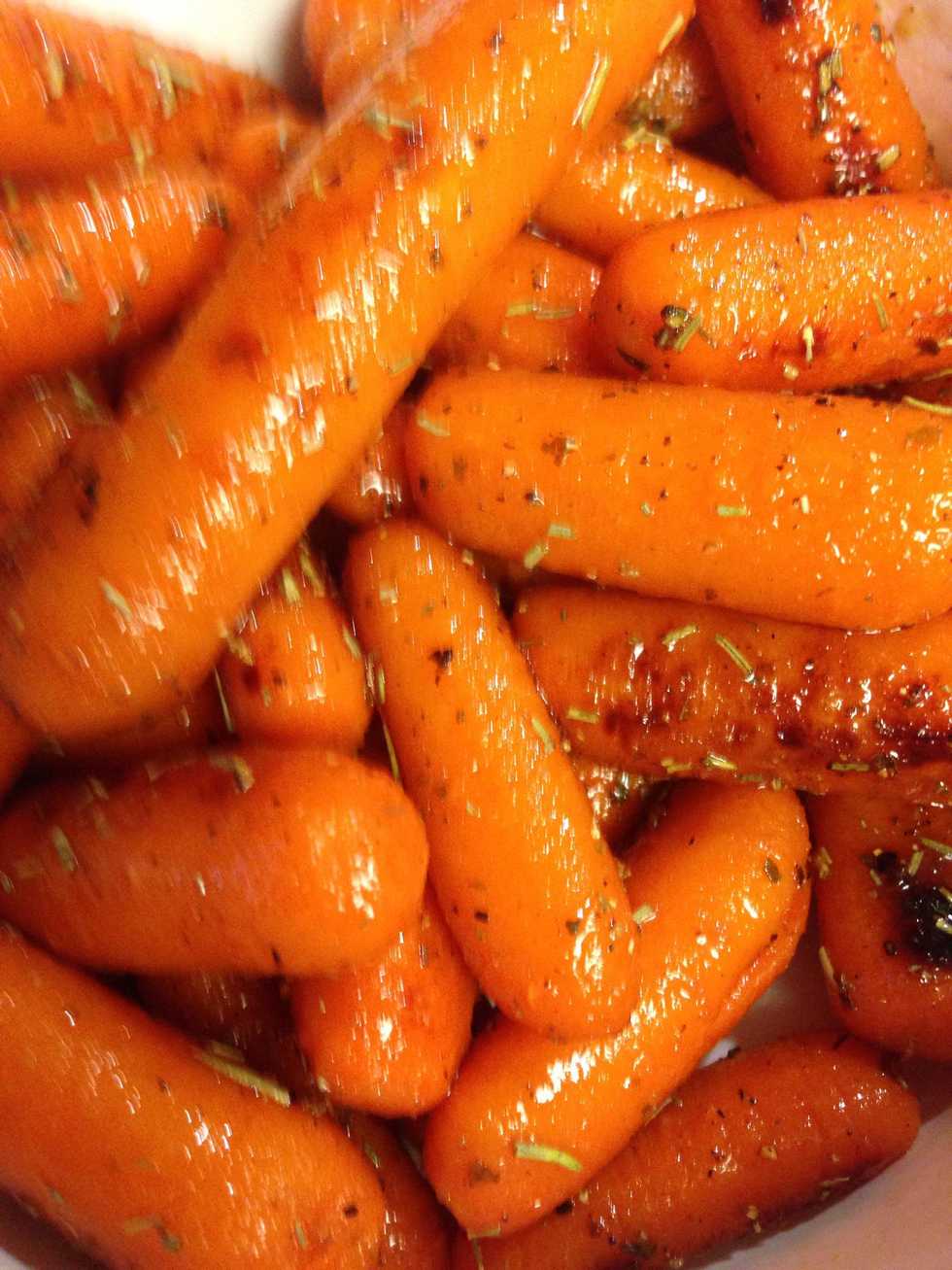 Pour over carrots in a frying pan on high heat. Cook for 4 minutes flipping every minute