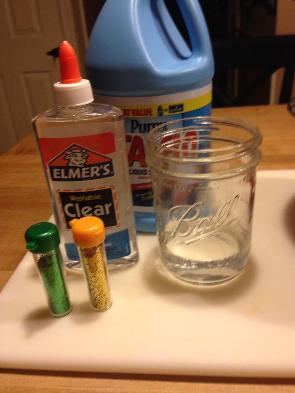 Add 1/2 cup of water into a large bowlAdd 1/2 cup of glue and mix wellAdd 2 tablespoons of glitter and mix until it's evenAdd 1/2 cup of liquid starch and mix in slowlyWhen you are done mixing, your slime should be smooth like the picture