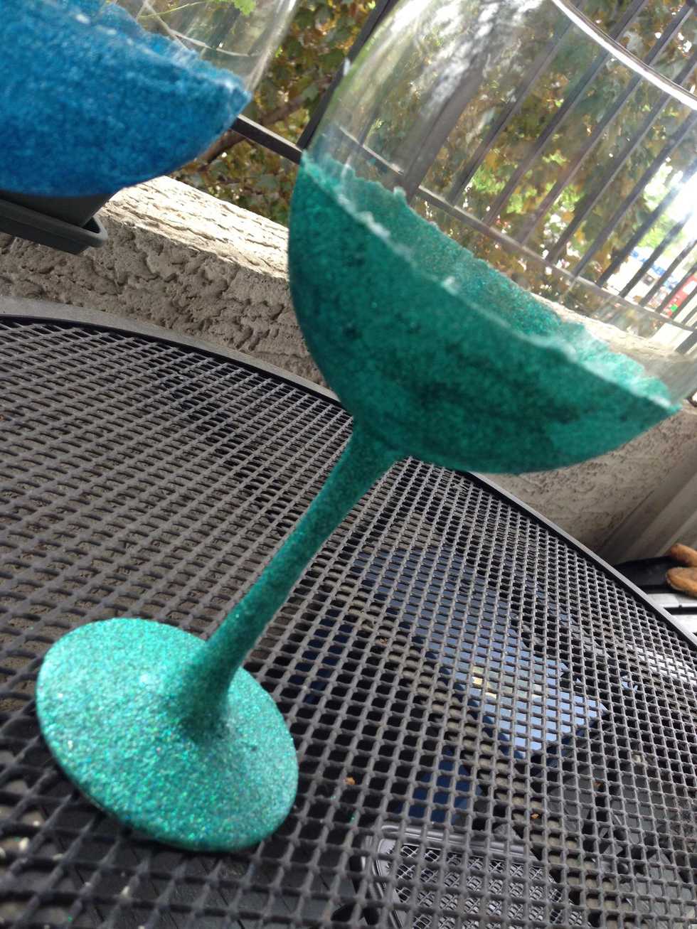 Brush another thin layer of mod podge on the glass and apply another coat of glitter. Let dry. Do this until you are satisfied with the look.