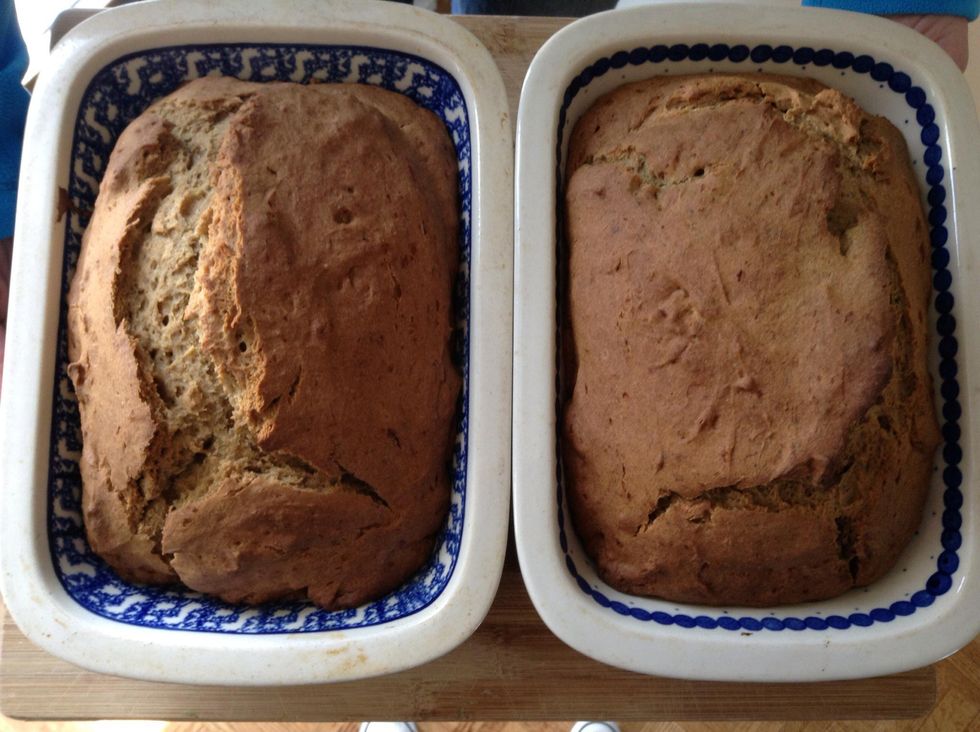 Add the third teaspoon of baking powder to the applesauce and stir. It will begin to bubble and expand so watch out!