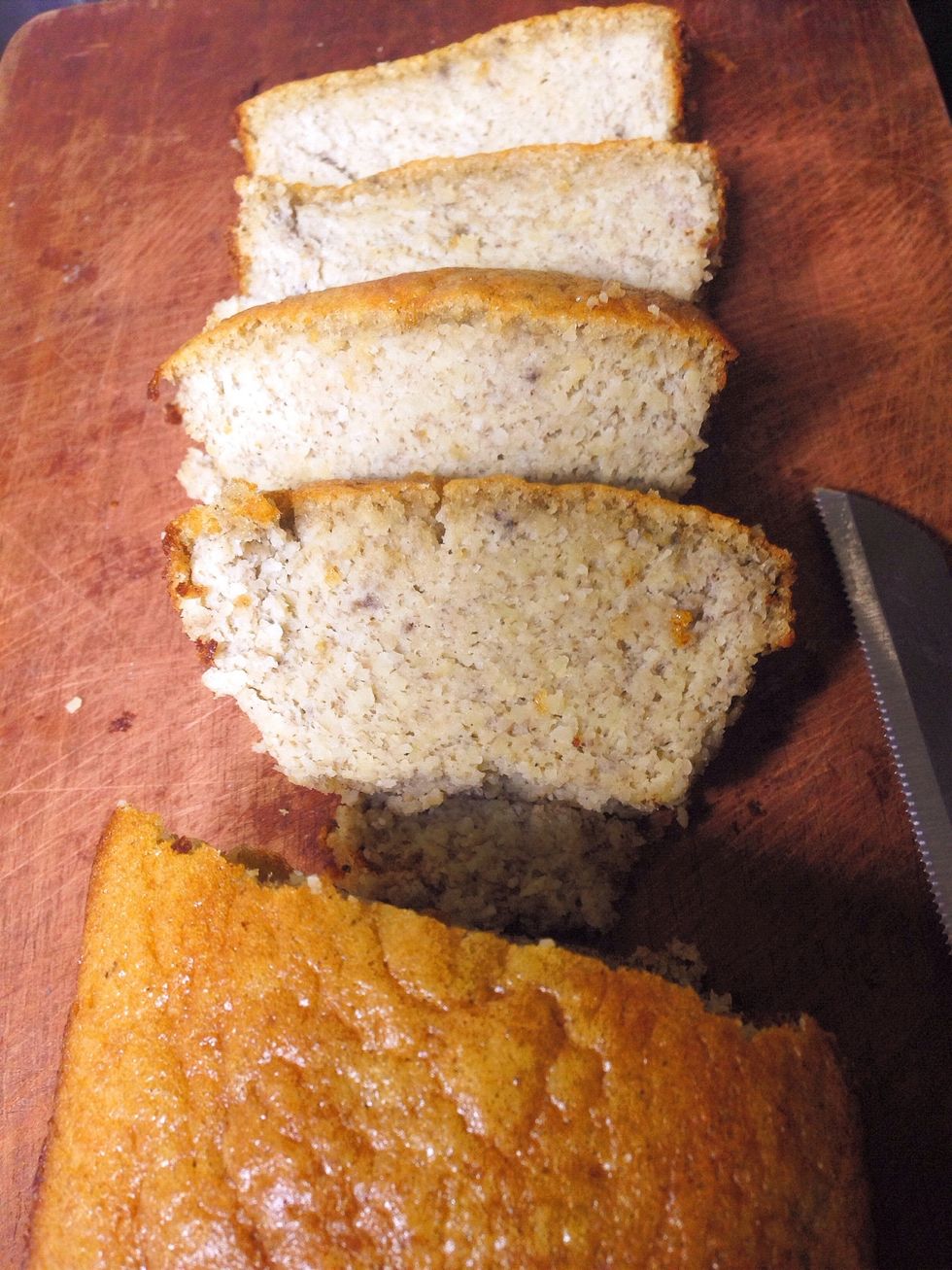 Pour the batter into loaf pan. At this point you can dump in chocolate chips, or for healthier version just dump in chopped dates. Bake it in preheated oven at 160C (320F) for about 50 minutes