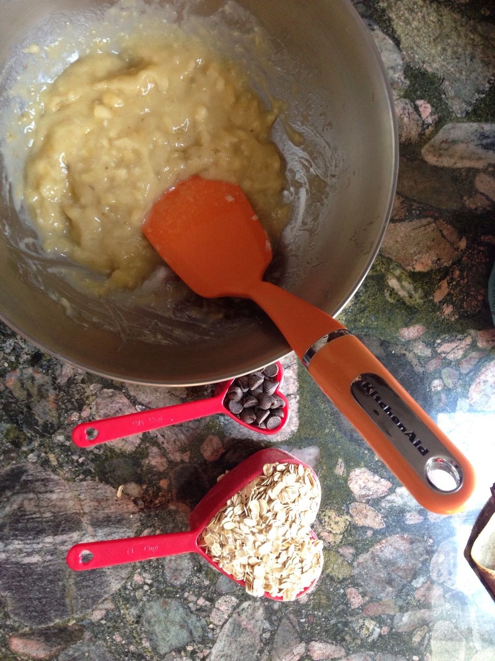 Once you have folded all of the ingredients scoop out the mixture and place them on a lightly greased cookie tray