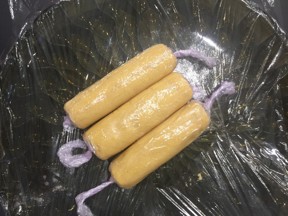 Divide the dough into 3 or 4 and make cylinders wrap and refrigerate