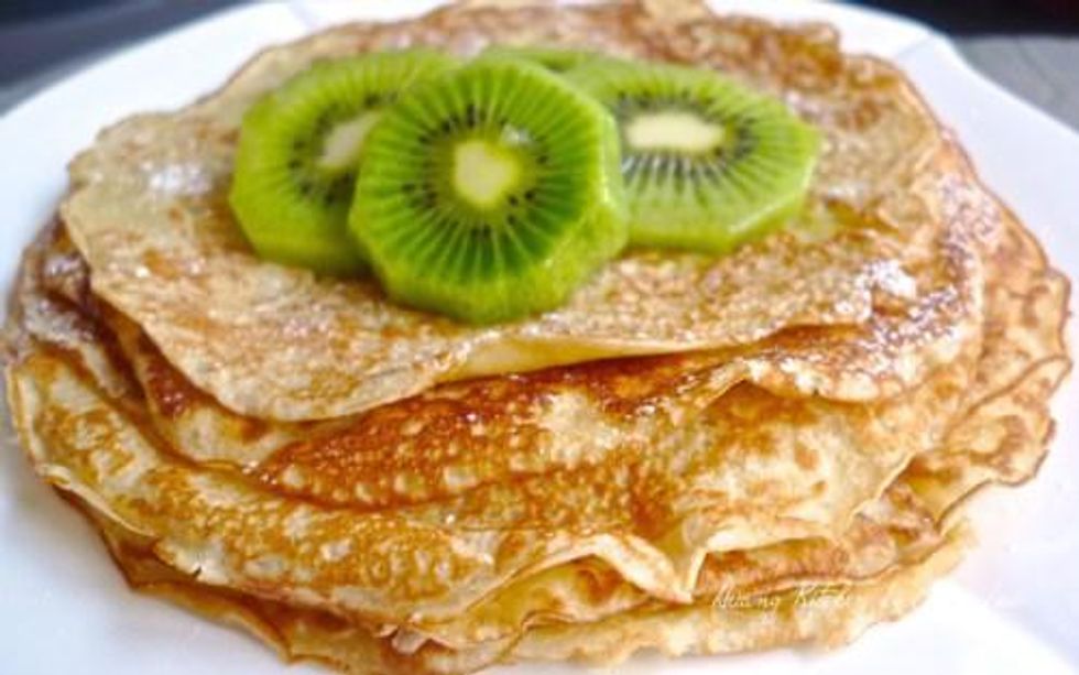 To cook the pancake, first lightly oil a non-stick pan over medium high heat.
