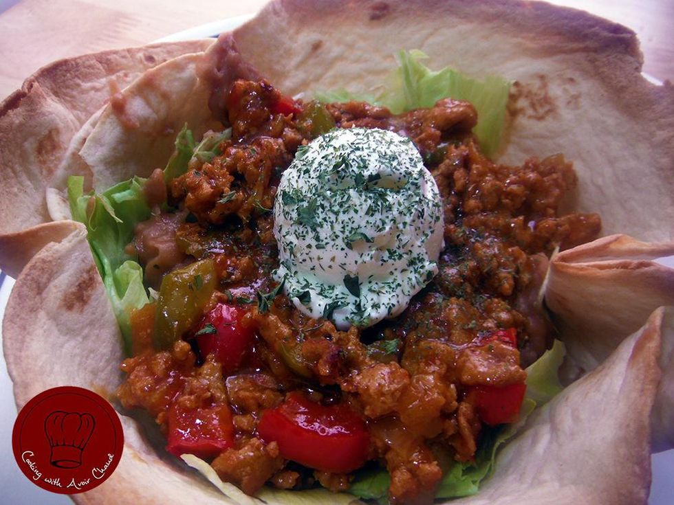 Press the large tortillas into the bowl to make sure the bottom is pressed completely to the bottom of the bowl. This will create the base for the tortilla.