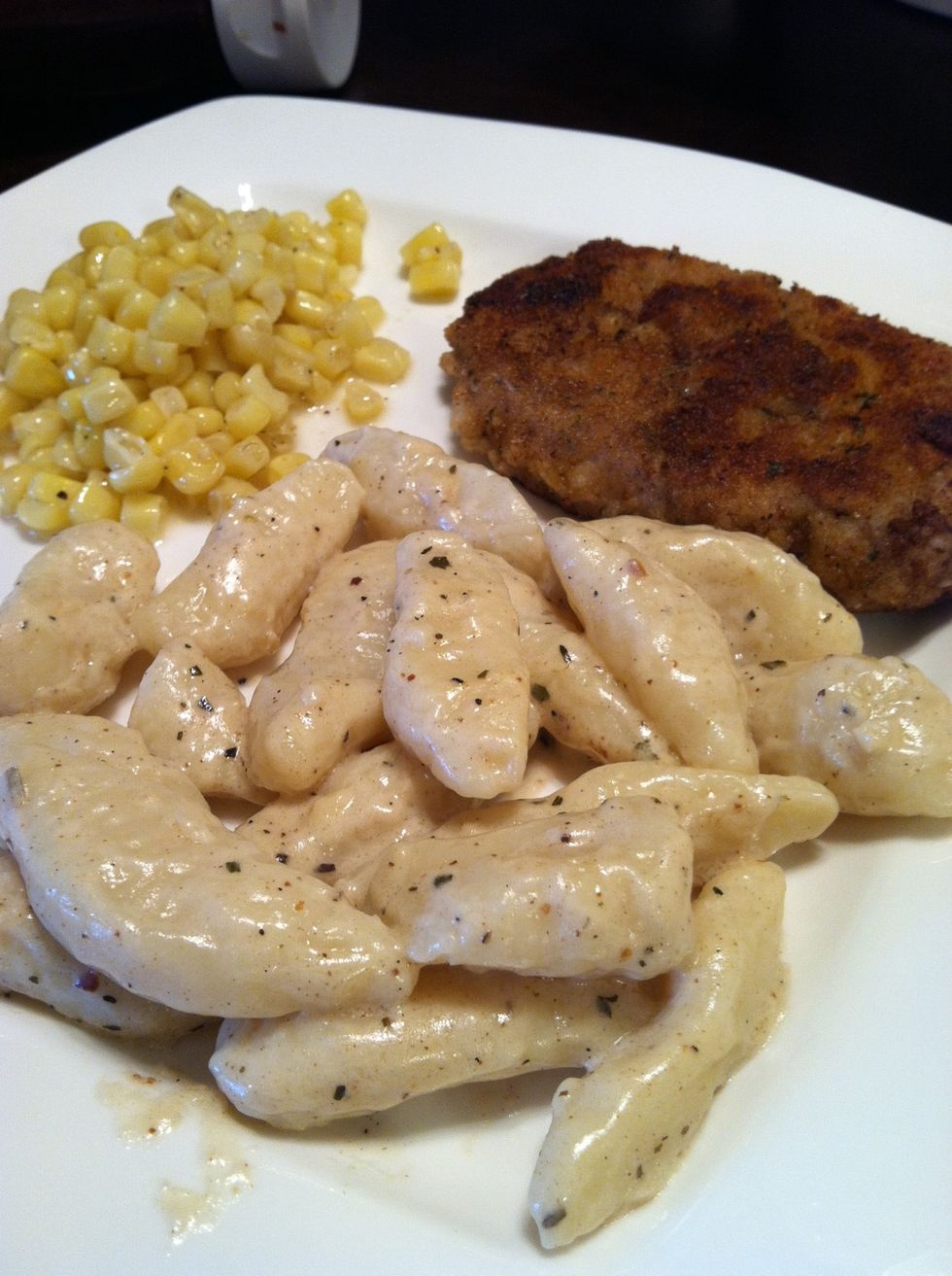Add to desired sauce and voila. I deglazed the pan I used for my pork with white wine and then added cream, italian herbs and salt and pepper TT.