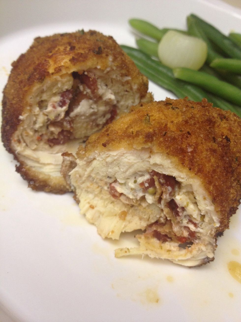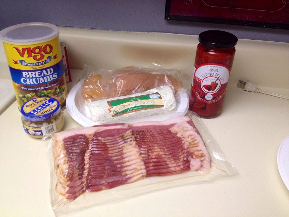 I made this with some of the ingredients I had on hand left over from our Christmas dinner and appetizers. You can't go wrong with goat cheese, roasted peppers and bacon.