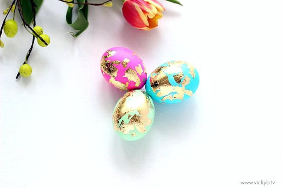 TIP: Start by putting glue and gold leaf on one side of the egg first then work your way around.
