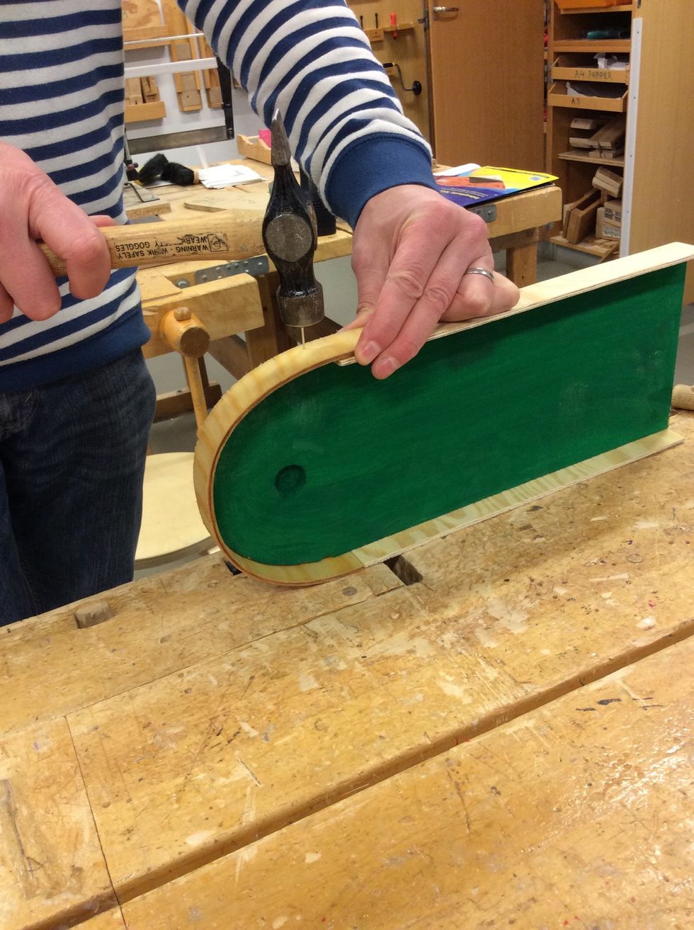 När du slipat dem ska du spika på dem på banans kant med 20mm spik.