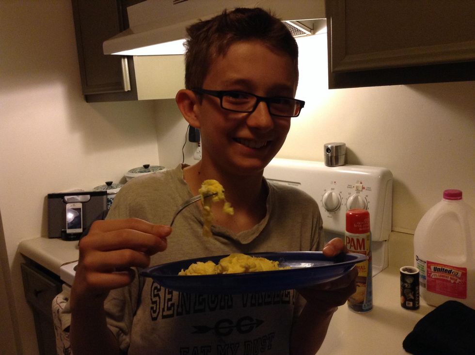 Continually stir and flip eggs with spatula until cooked to your liking.