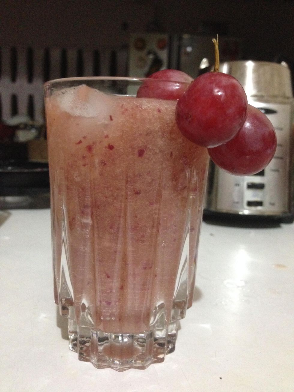 Now you are ready to serve!!!! Add ice in glass and pour drink then add grapes at the edge of the glass to decorate.