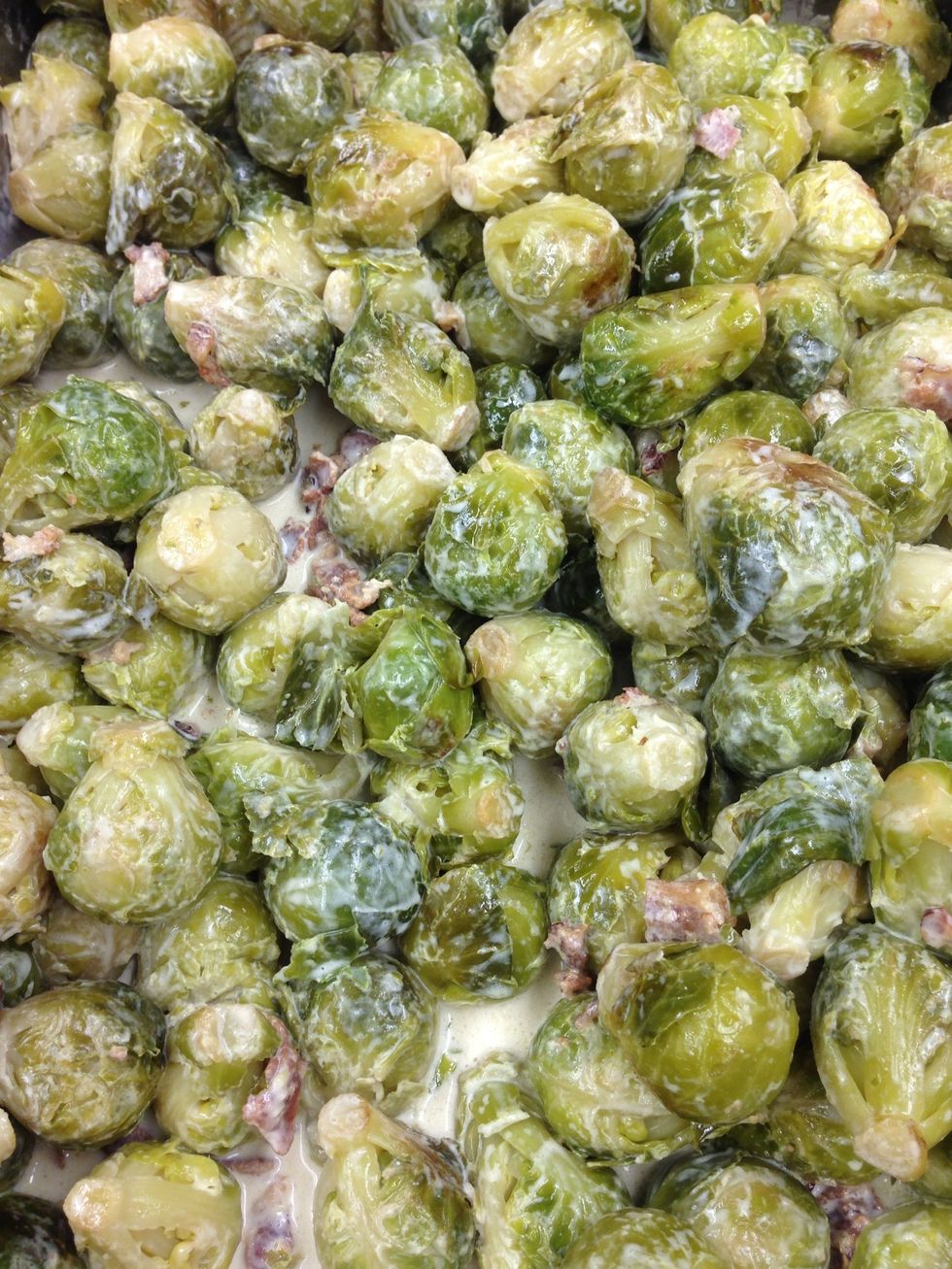 Cover Brussels sprouts and stir in adjust salt and pepper to taste and enjoy!