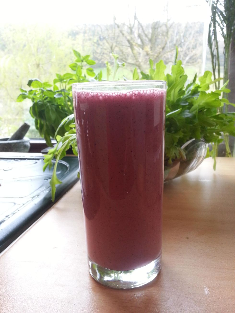 Voila! Delicious and creamy non-dairy Super Berry Smoothie. A great breakfast or snack drink. **Add a handful of almonds or a bit of chia seeds if you want to make the drink more protein rich.
