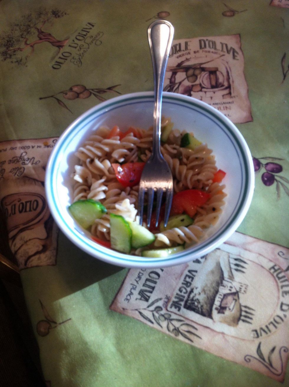 ...and make your dressing with olive oil, thyme, water, salt, oregano and black pepper