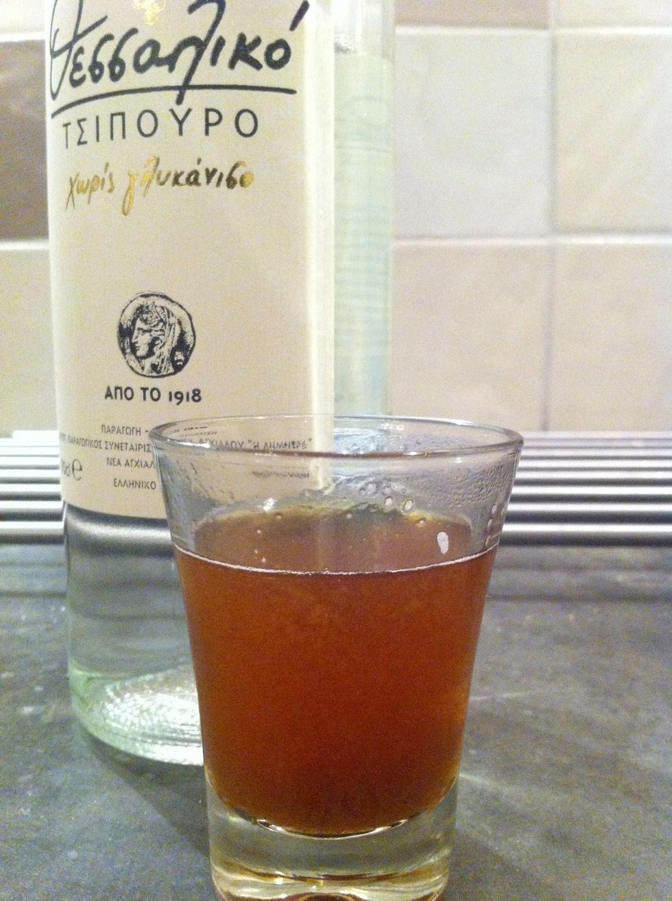Use greek tsipouro or raki and use a measure to pour up 4 x 4 cl (1.35 Fl.oz)